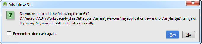 Whenever you add a new file, Android Studio will prompt if you want to add to Git.