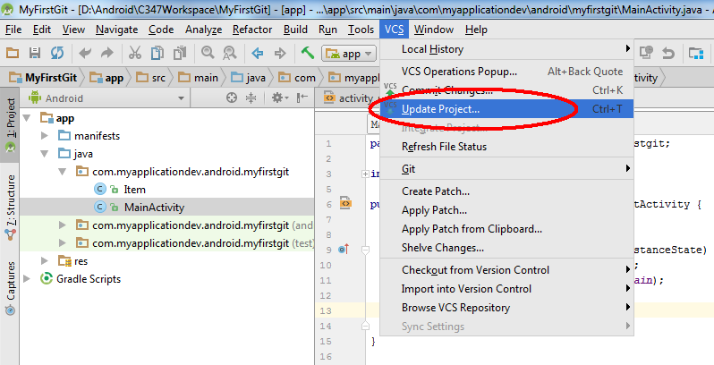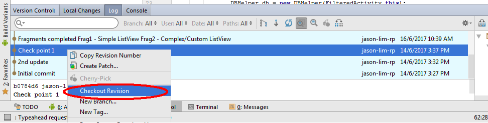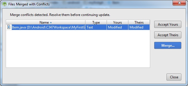 There will be times, the Android Studio will just prompt for merge. That's to merge your changes to the changes another collaborator has done, before you commit your code and after you check out the project.