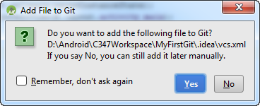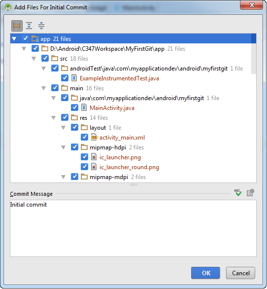 Notice that vcs.xml is unchecked since the file is not required to be committed.