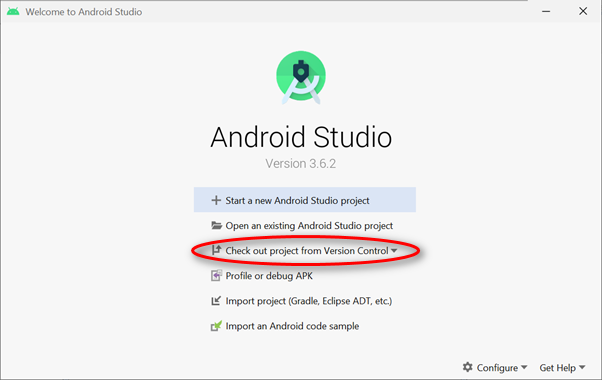 To check out a project from the Github, it's quite straight forward as the Android Studio has an option for it.