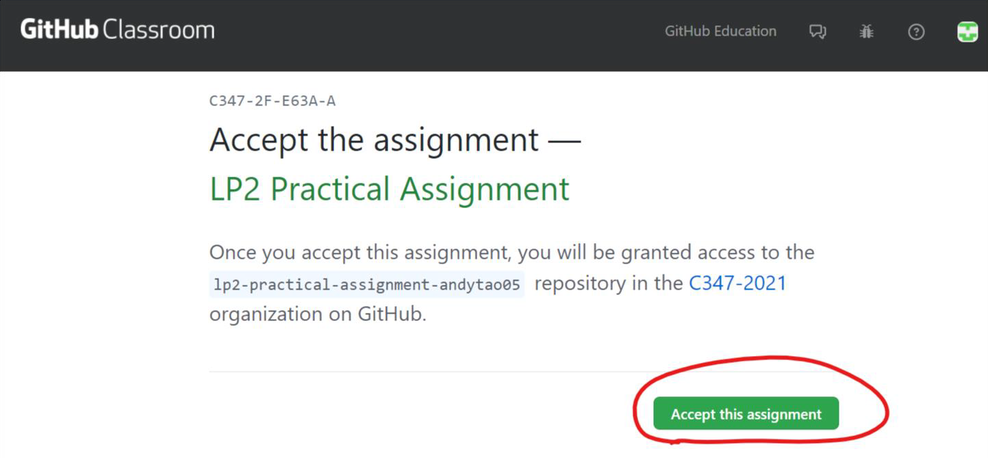 1. Visit the link provided by your lecturer and click ‘Accept this assignment.
