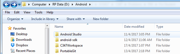 Do choose to install Git at the folder created for Android IDE installation. For example, D:\Android\PortableGit