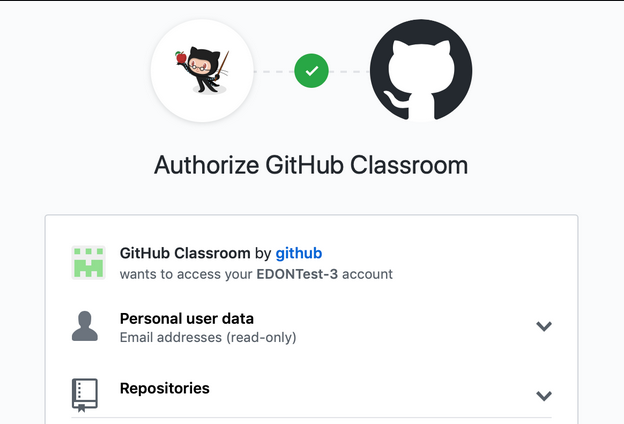 2. If this is the first time you are using GitHub Classrooms, you will be prompted to authorise GitHub Classrooms to access your GitHub account.